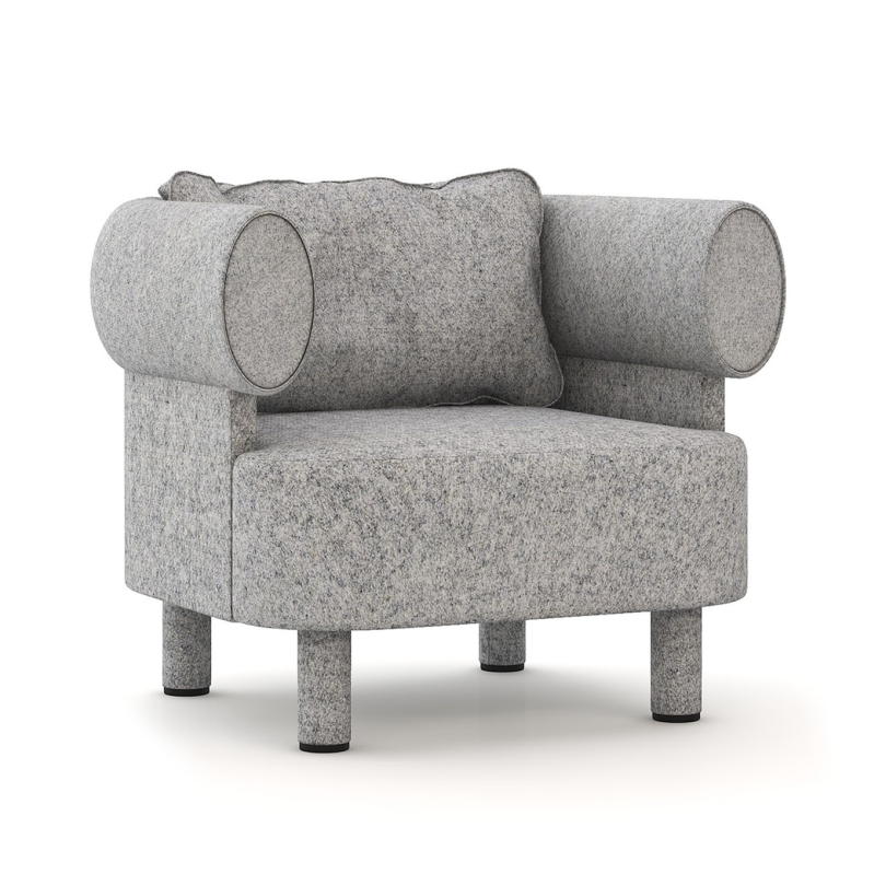 MAG-MAG chair, as shown, the classic chair design and gives it a modern twist, creating a sleek and sculptural look. This chair stands out and grabs attention in any room, while still providing exceptional comfort alongside its stunning appearance. It is also available in other fabrics and colours.