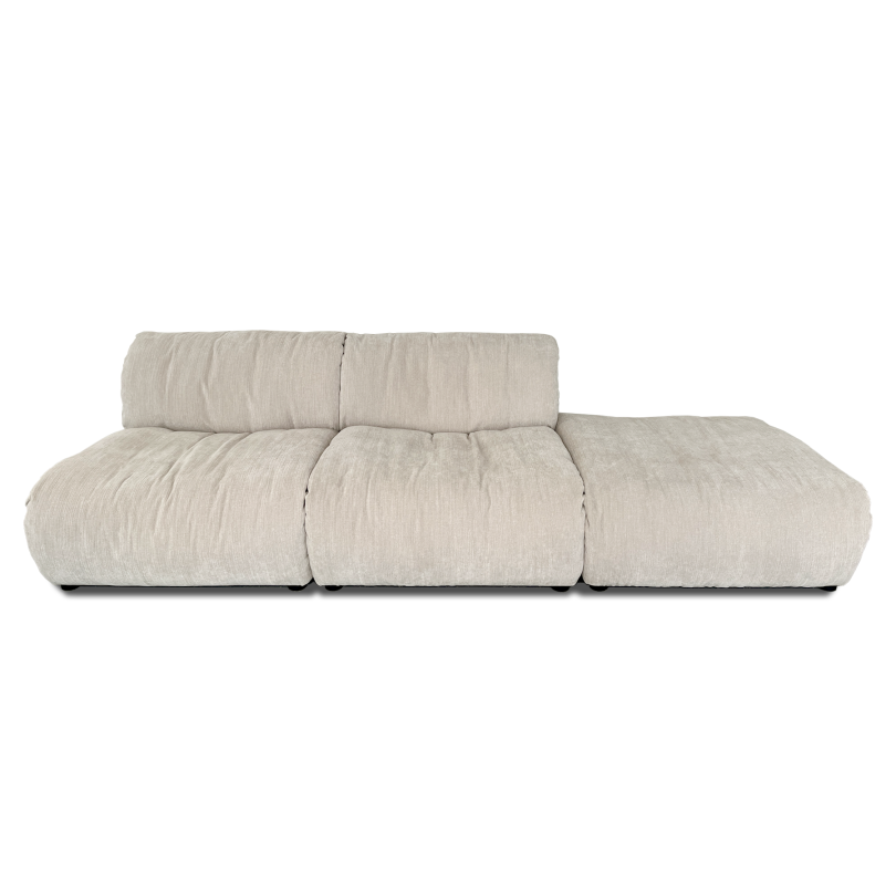 KIN-KIN modular sofa, as shown, offers a soft and comfortable seating experience while embodying a minimalist aesthetic characterised by clean lines and simple shapes. It is a perfect addition to any area with the living room. Available in other fabrics and colours.