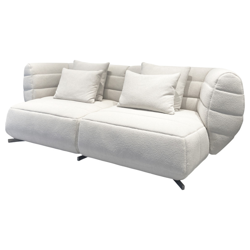 VAD-VAD three seater sofa, as shown, this captivating sofa serves as perfect focal point for both modern and contemporary spaces. With its distinctive shape and sleek lines, it exudes an eye-catching charm. Upholstered in white fabric, it offers a clean and stylish look.