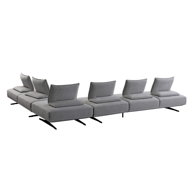 FLEX-FLEX modular sofa, as shown, a long seat that can be a standalone piece or easily fuse in with others with its flexible weighted cushions design. Perfectly angled with an anti-slip base, the backrest cushions will remain in place to provide the support you need yet can still be easily moved according to your preference. Feeling particularly laidback, you can even move the cushions onto the floor. This product is available in other configurations and can be customised into other fabric, colours and leather.