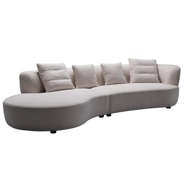 LON-LON Three Seater Corner Sofa, as shown, features features deep, plush cushions and a gently curved silhouette that invites lounging. The clean-lined arms and slightly reclined backrest offer ergonomic support, while the L-shaped design maximizes seating in compact spaces.
