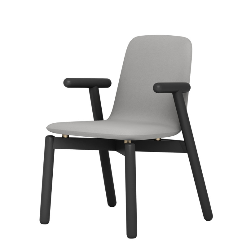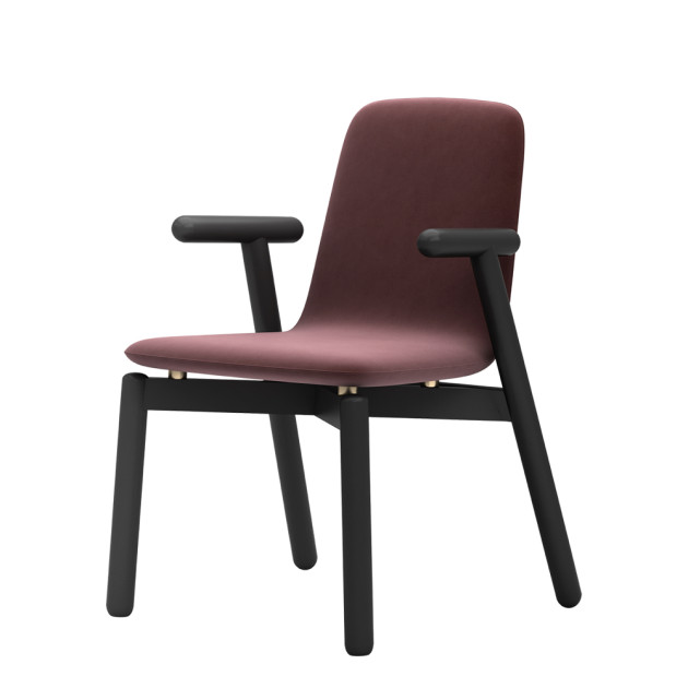 Shore Chair, an understated silhouette with velvet upholstered seat that contrasts with a pair of statement armrests. Velvet colour is customisable.