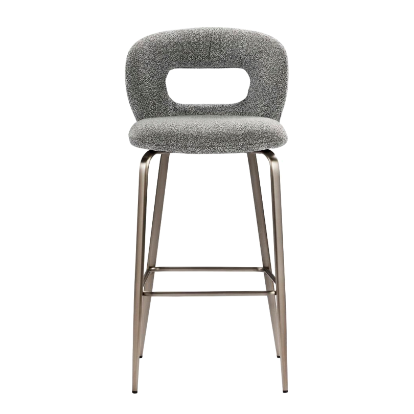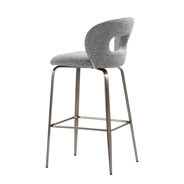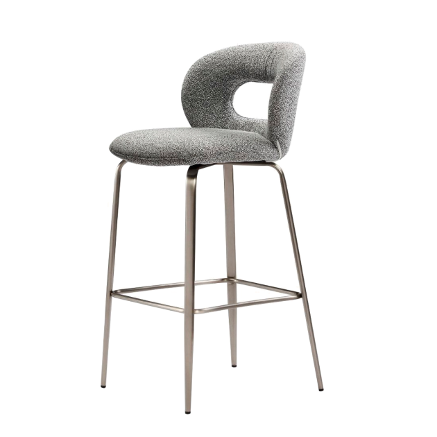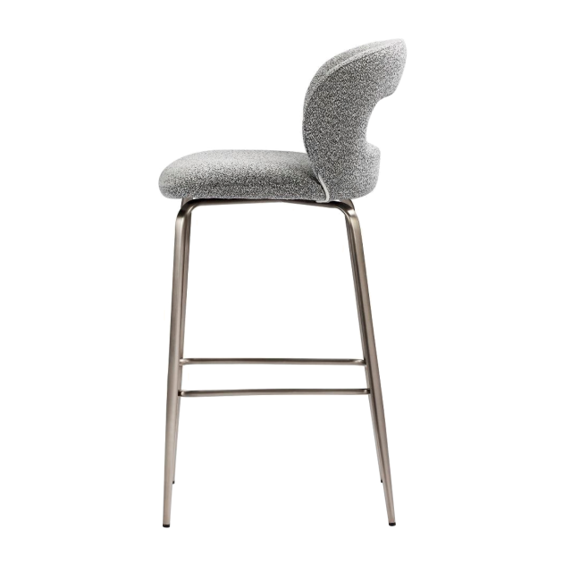 LOG-LOG bar stool, as shown, fabric upholstery with brushed nickel stainless steel leg frame. The product is available in other fabric and colours.