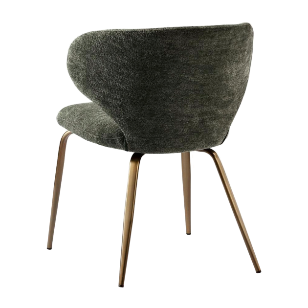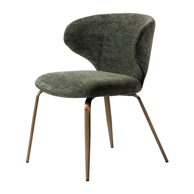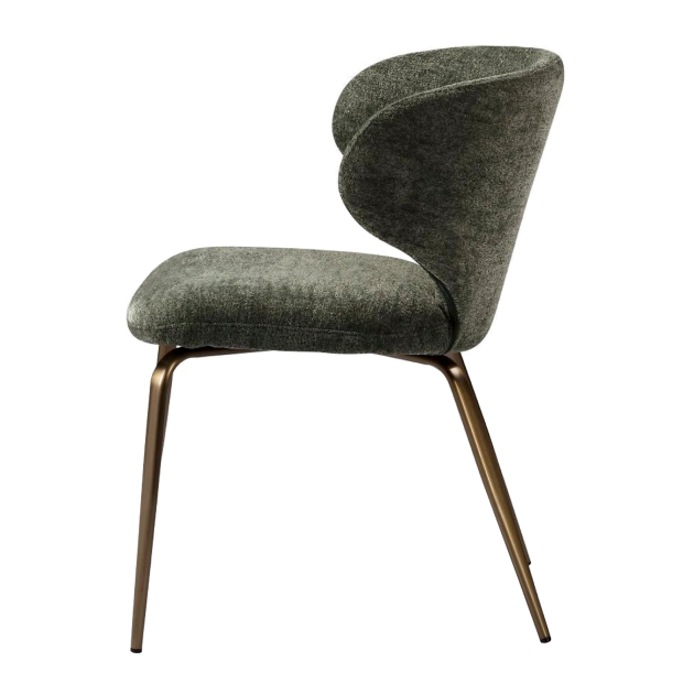 The LAW-LAW chair features a fabric upholstery and brushed bronze stainless steel legs. The extended arms of this chair create a flowing silhouette that envelops your body. This product is available in other fabrics and colours.