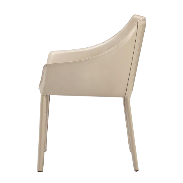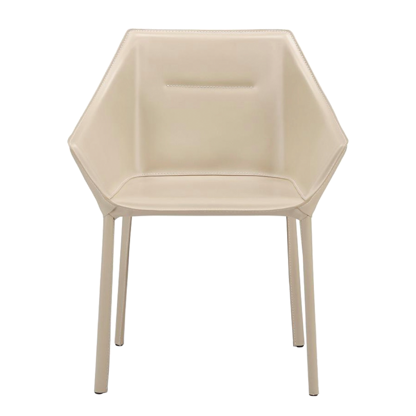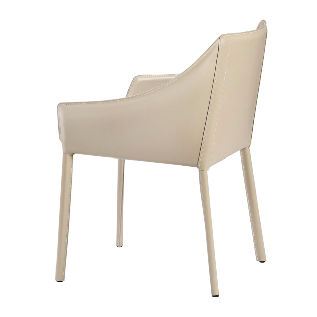 CAP-CAP chair, as shown, is entirely upholstered in synthetic saddle leather, both on the seating area and the legs.