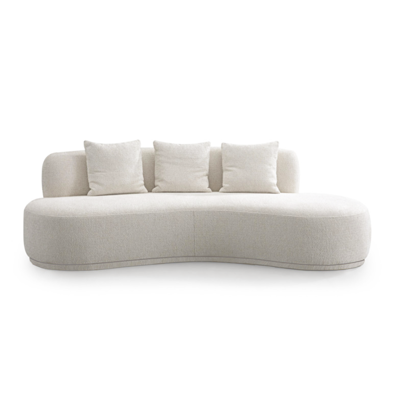 PAL-PAL Three Seater Sofa, as shown, crescent shape, whole sofa upholstered in fabric and includes three cushions. This gracefully curved sofa along with its grandeur size will surely adorn your room doubtlessly. The sofa can be customised into other fabric or colours and available in other configurations.