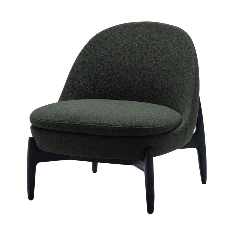 ECO-ECO Lounge Chair, as shown, features deep, enveloping comfort with clean contemporary lines. Its generous seat and slightly reclined backrest are upholstered in premium textured fabric, while the slender legs add an airy lightness. Available in multiple fabrics and colours.