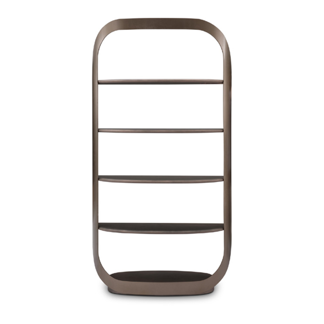 The MAC-MAC multifunction shelf features a distinctive curved, arched frame design that gives it a unique, eye-catching silhouette. The open shelves allow for easy access and display of items.