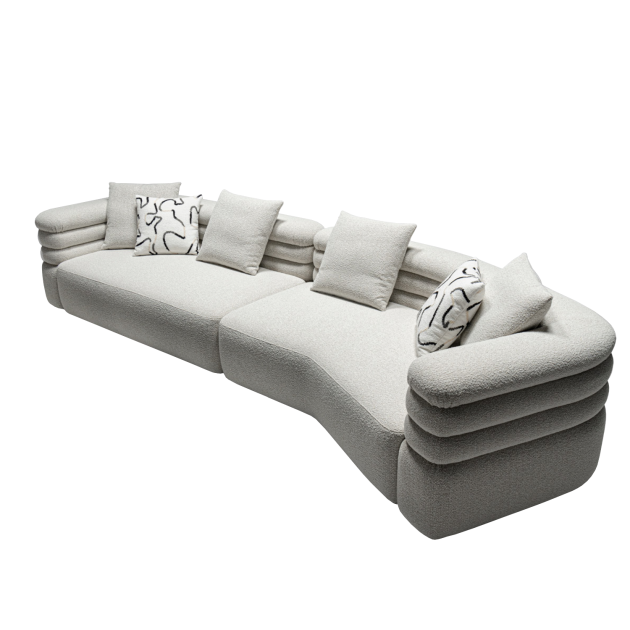 MUD-MUD Four Seater Corner Sofa, as shown, features sink-in comfort with clean contemporary lines. Its low-profile design features plush, cushions wrapped in textured fabric, creating an inviting lounge experience. Available in sizes, fabrics and leathers.