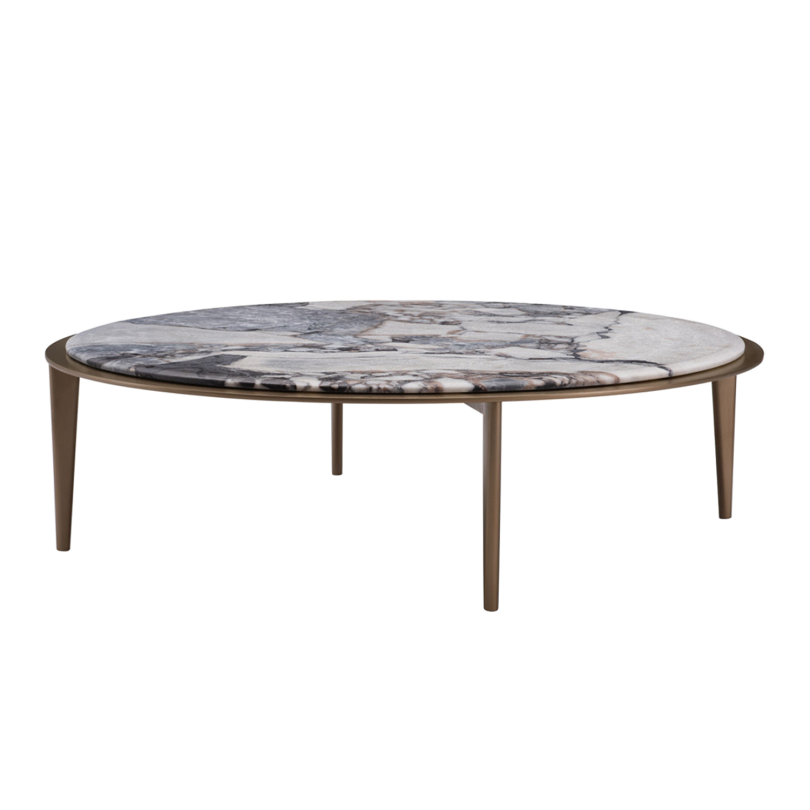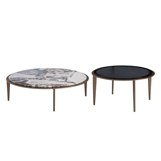 CC-CC coffee table, as shown, an elegant round coffee table features a stunning marble top. Its sleek, modern design is complemented by slender, metallic legs, adding a touch of sophistication to any living space. Perfect for both functionality and aesthetic appeal in contemporary interiors. Also available in side table.
