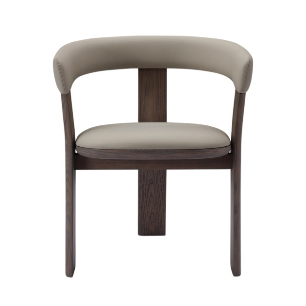 NY-NY Chair, as shown, features a stylish design with a rounded backrest and soft upholstery for optimal comfort. The combination of plush seating and sturdy wooden legs ensures both durability and support. Its contemporary aesthetic makes it a versatile addition to any dining or living space, blending seamlessly with various decor styles while providing a welcoming place to sit.