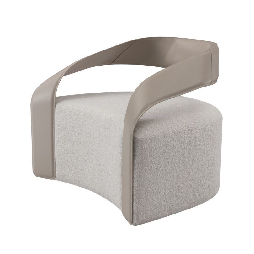 TIE-TIE Lounge Chair, as shown, showcases a harmonious blend of comfort and style. With a plush, rounded seat wrapped in soft fabric and sleek, curved armrests, it offers both support and elegance. Its unique design makes it an eye-catching piece, ideal for enhancing contemporary interiors while providing a cozy seating option.
