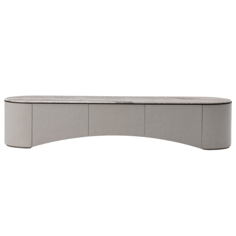 VIA-VIA TV Cabinet, as shown, features a stunning blend of modern design and functionality, featuring a sleek, curved silhouette that captivates the eye. Finished in a soft hue with contrasting accents, it provides ample storage while enhancing any entryway or living space with its elegant presence.