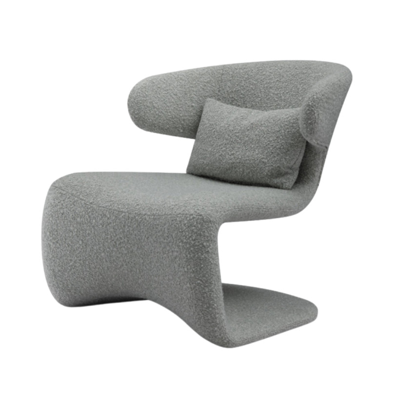 PLI-PLI , as shown, features a captivating fusion of art and comfort. Its organic curves, enveloped in plush, textured fabric, create a dynamic silhouette that invites relaxation. The integrated cushion enhances the experience, making this chair a striking centerpiece in any modern living space.