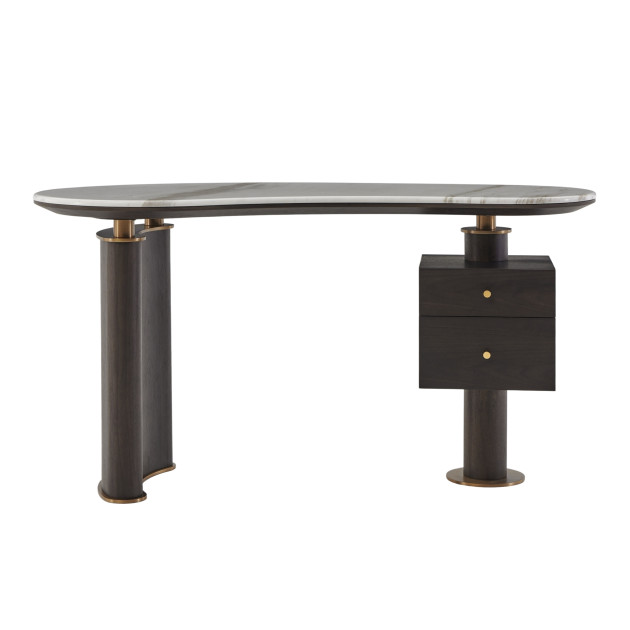 Natural marble | Open grain black walnut veneer | Brushed brass stainless steel