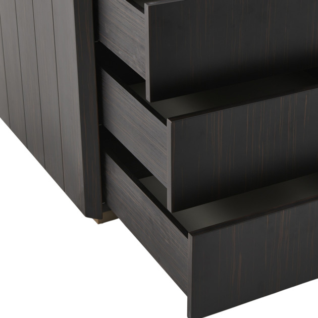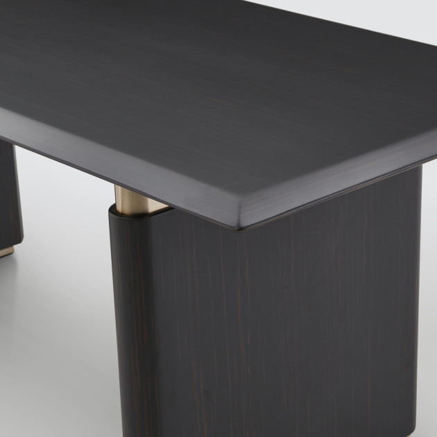 Engineered ebony wood veneer | Brushed champagne gold stainless steel