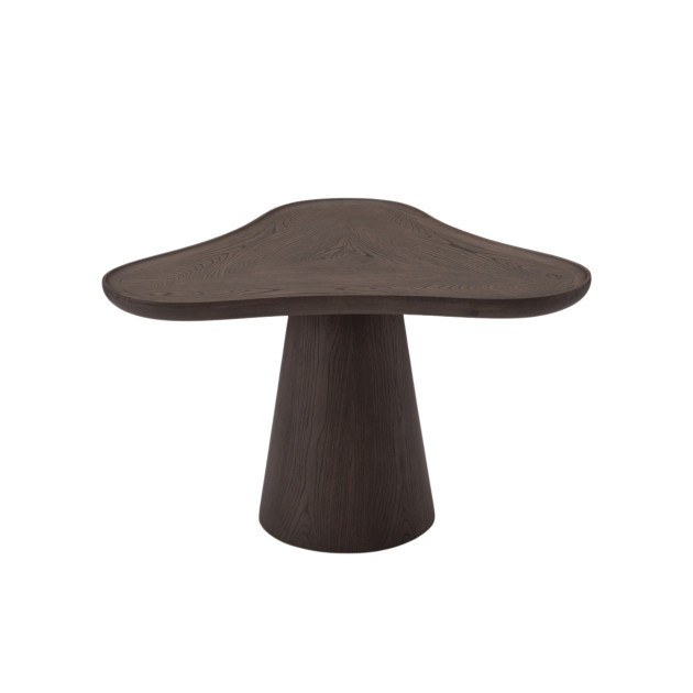 Dark grey elm veneer top | Solid wood edge | Fibreglass base with dark grey elm veneer
