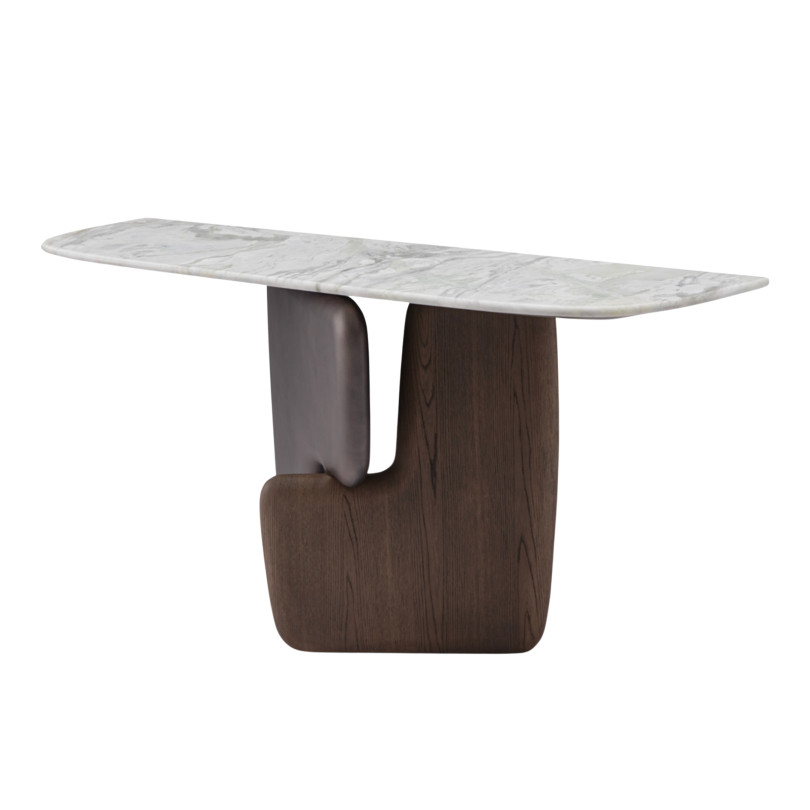 Natural marble | Elm solid wood leg | Dual grey painted fibreglass base