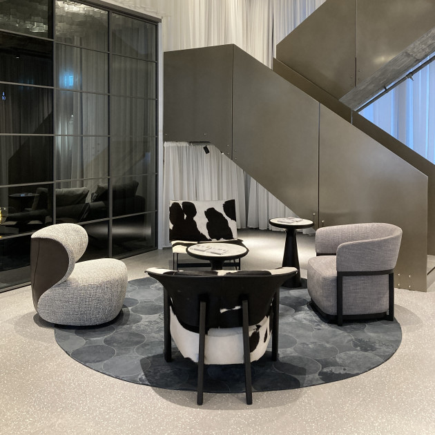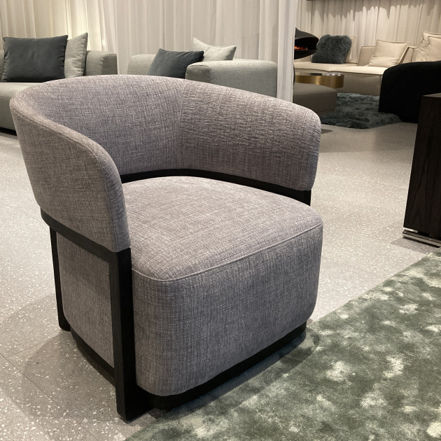 WAI-WAI Lounge Chair, as shown, envelops you with a beautifully curved backrest that is further highlighted by the solid wood frame. A simple, condensed design is perfect for any space. Available in other colours and fabrics.