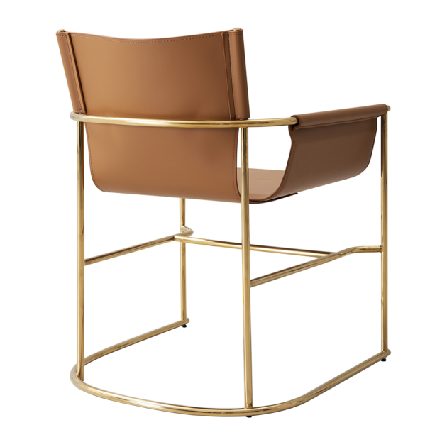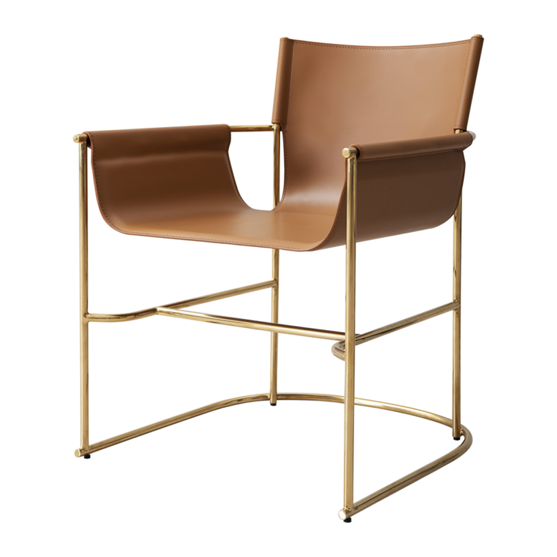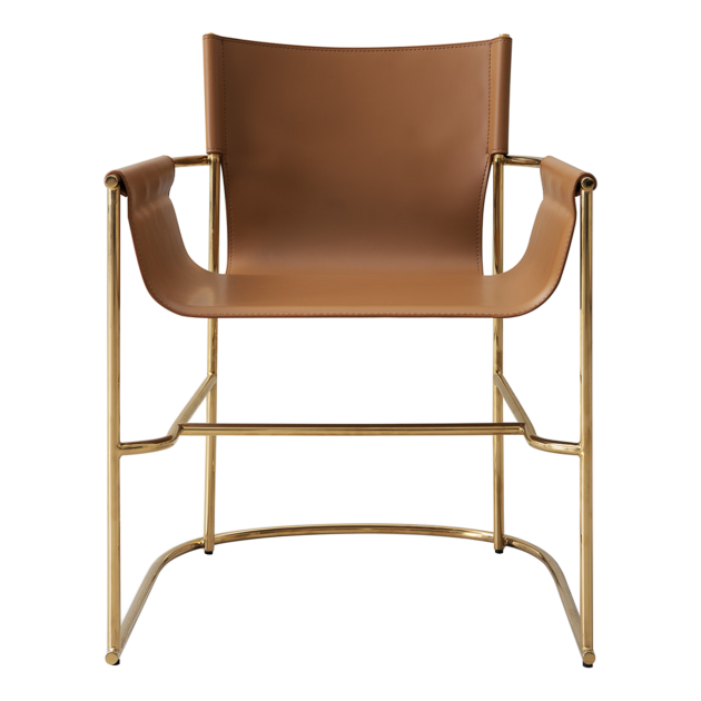 HOR-HOR Chair, as shown, a concept derived from the director chair with high quality microfibre hard leather in a gold colour stainless steel finish. Available in other colours.