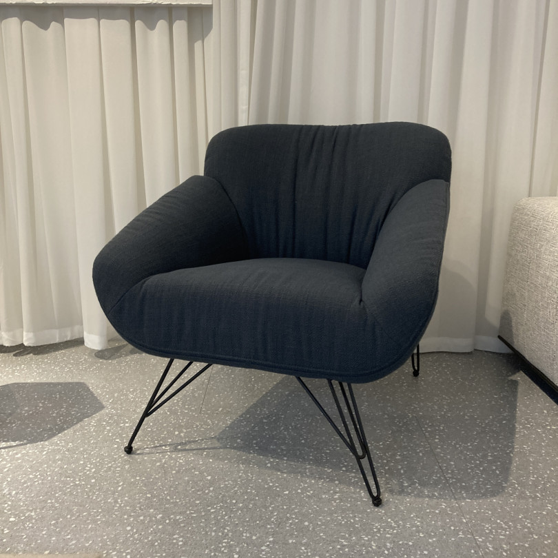 SU-SU lounge chair, as shown, the chubby lounge chair that is wrapping around to cocoon you in superior comfort. The base is constructed with metal leg in black finish, other colours and fabric available for the seater.