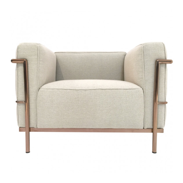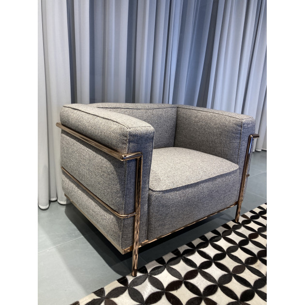 SA-SA one seater, as shown, black-grey woven fabric with a polished rose gold plated stainless steel frame. The product available in other colours.