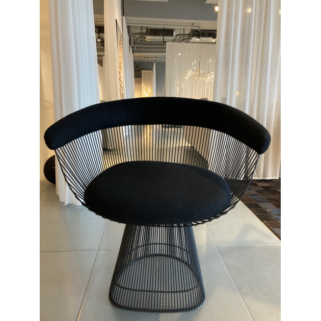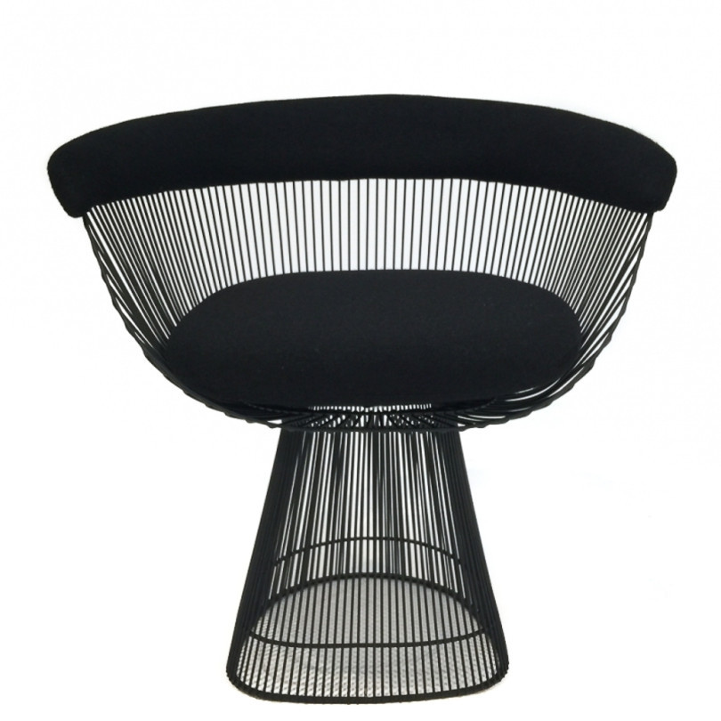 HA-HA chair, as shown, black fabric with a black metal wire frame. The product is available in other colours.