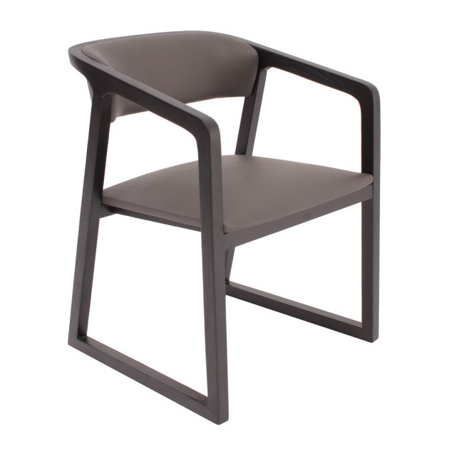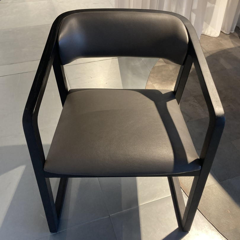 WON-WON chair, as shown, dark grey high quality synthetic leather with a black solid ash wood frame. The product can be customised into other colour, fabric or leather and a dark brown frame.