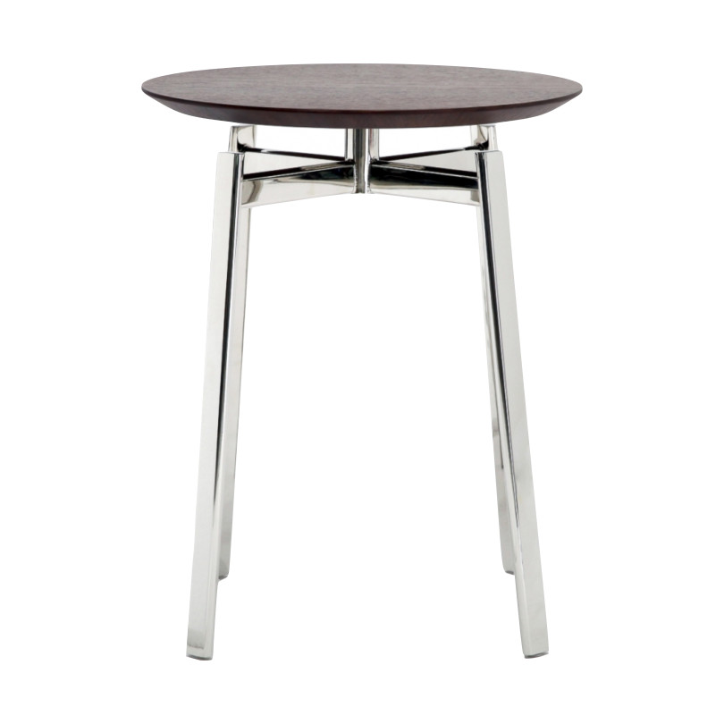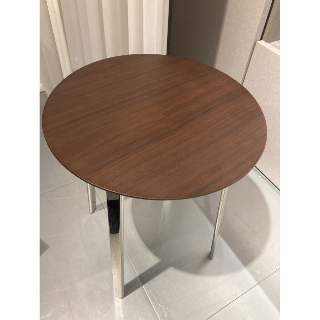 HU-HU side table, as shown, walnut wood veneer top and silver stainless steel legs.